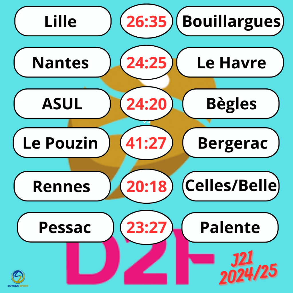 Ce samedi (20h) l’équipe de Palente Besançon Hb se déplaçait d côté de Pessac ou les bisontines se sont imposées (23/27) avec surtout un maintien assuré ! Découvrez les autres résultats